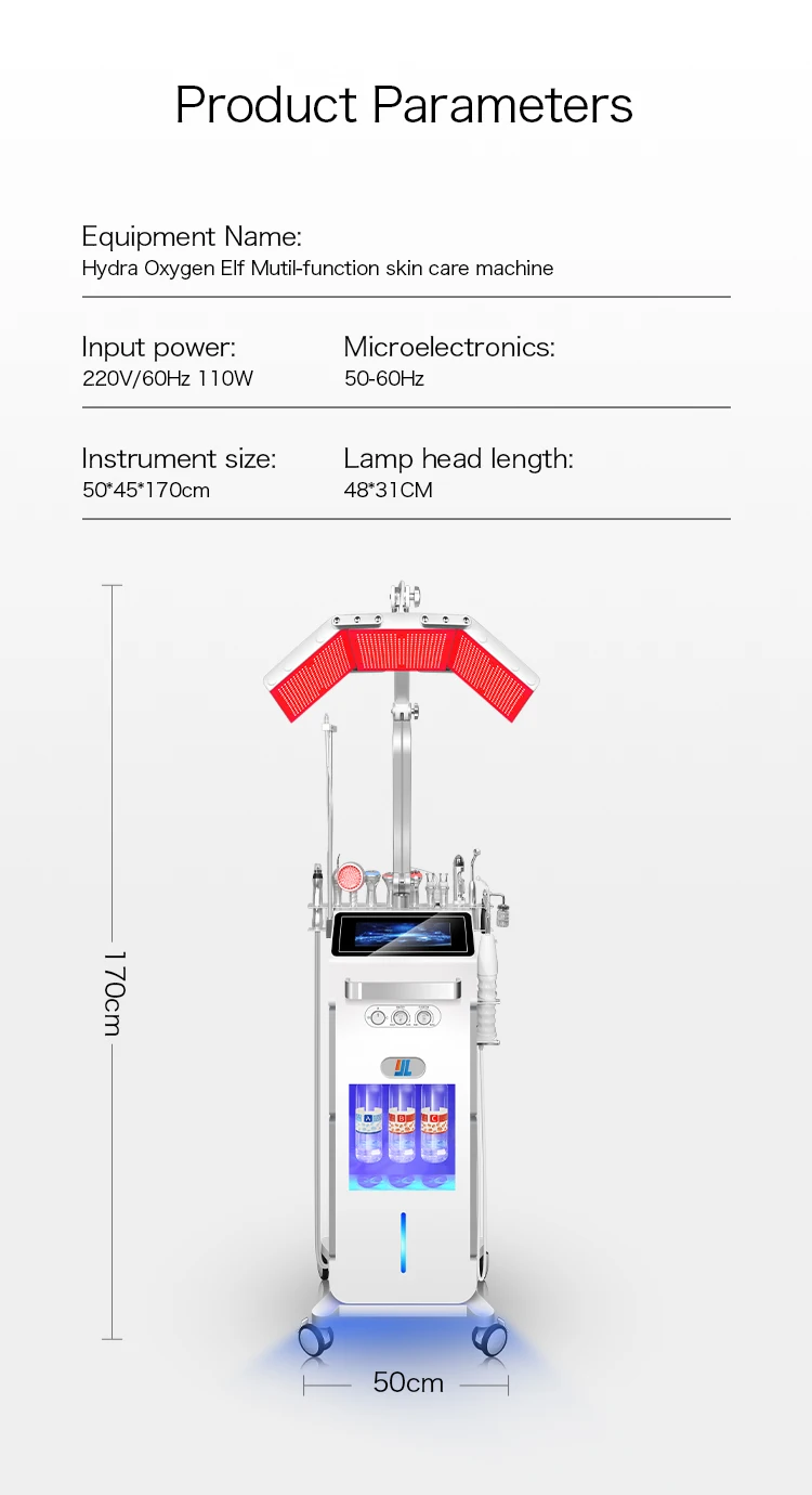 equipment. This all-in-one hydra dermabrasion facial device is designed to provide a comprehensive range of treatments to keep your skin looking and feeling its best. The Jet Peeling Water Multifunctional Microdermabrasion Hydra Oxygen Facial Machine comes with a cool handle for easy use and a range of exfoliating, LED light therapy, RF therapy, massager , bubble oxygen,microdermabrasion, face cleaning, ion spray, facial steamer, high frequency, face care, and beauty care functions. |