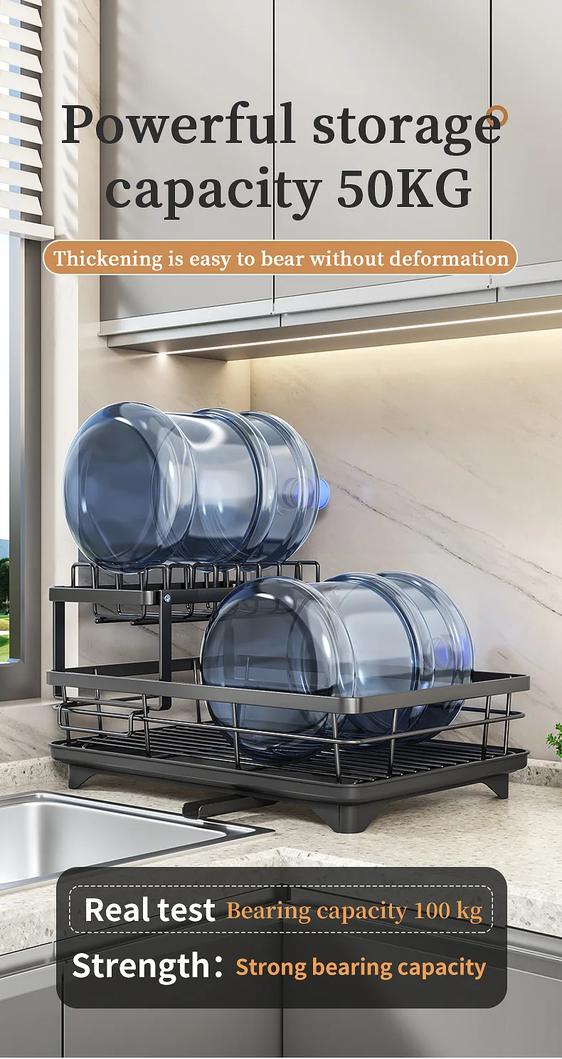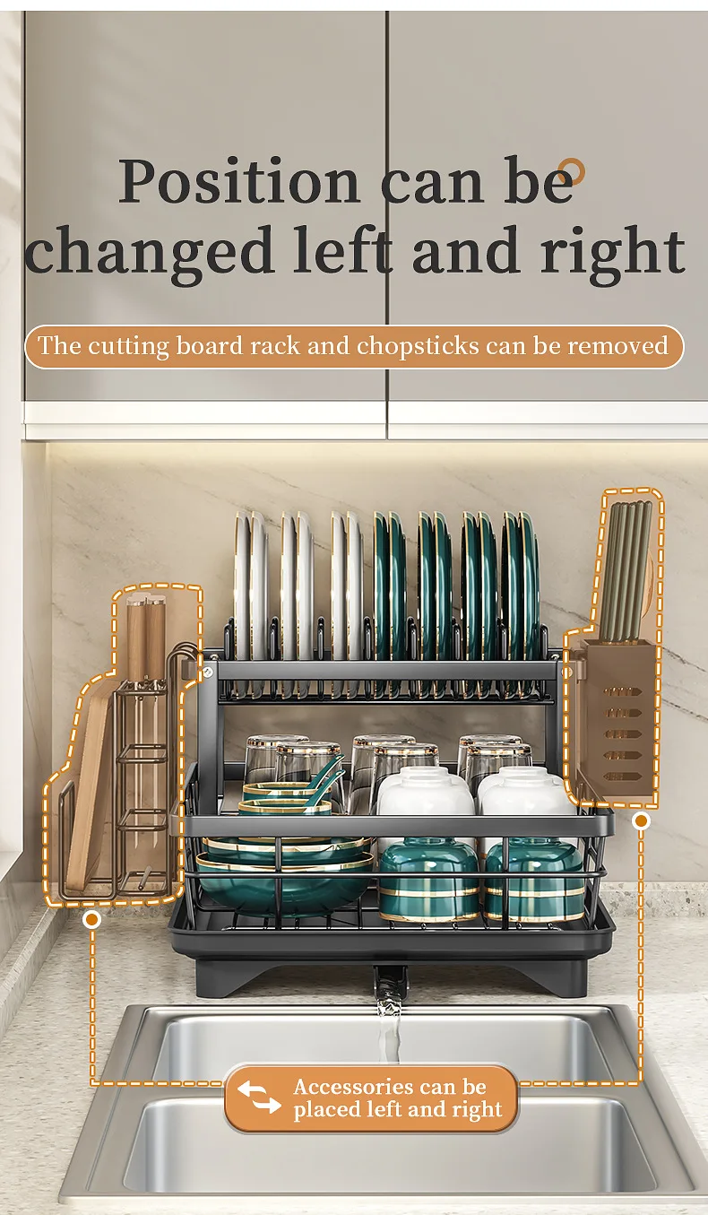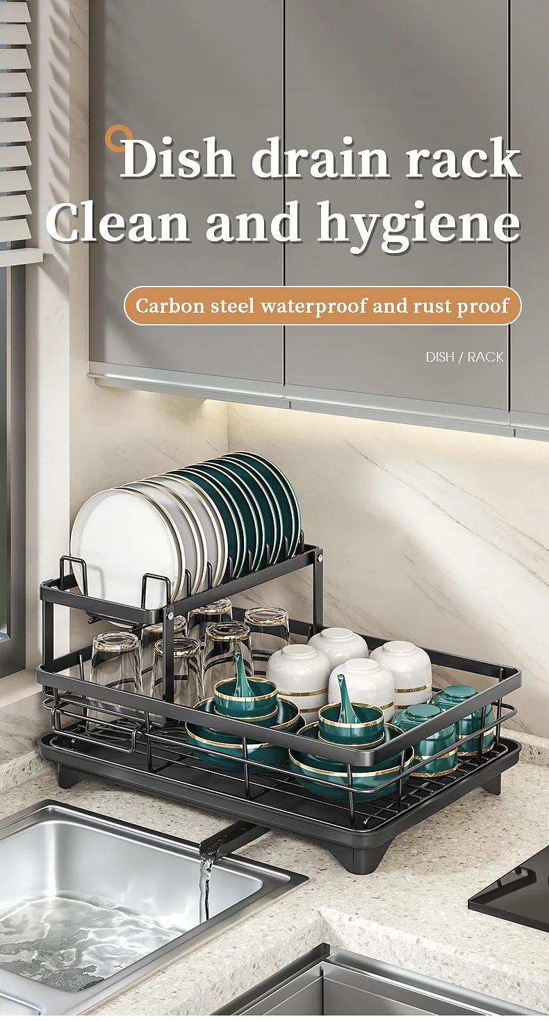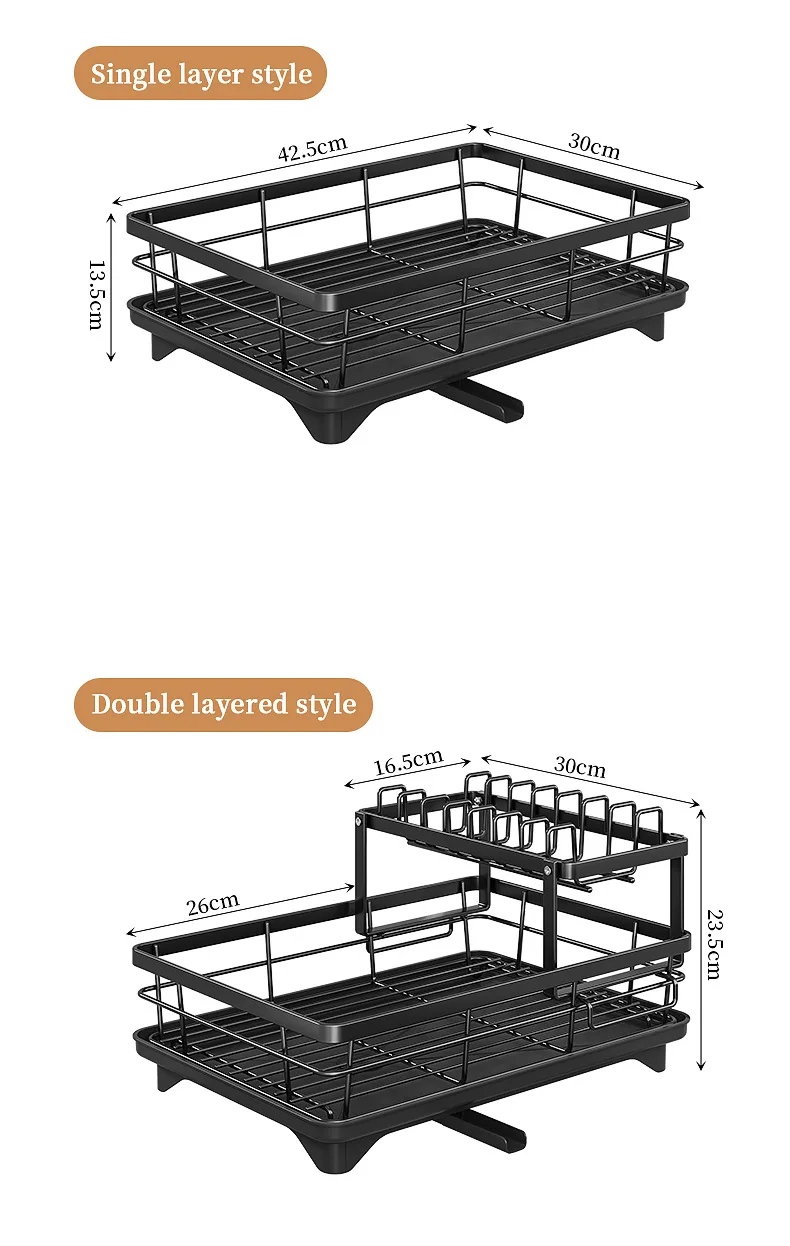 Exquisite workmanship: This drying rack is easy to adjust and clean because it has a detachable upper layer that can accommodate dishes of different sizes. It can also help you maintain kitchen hygiene by preventing water accumulation.