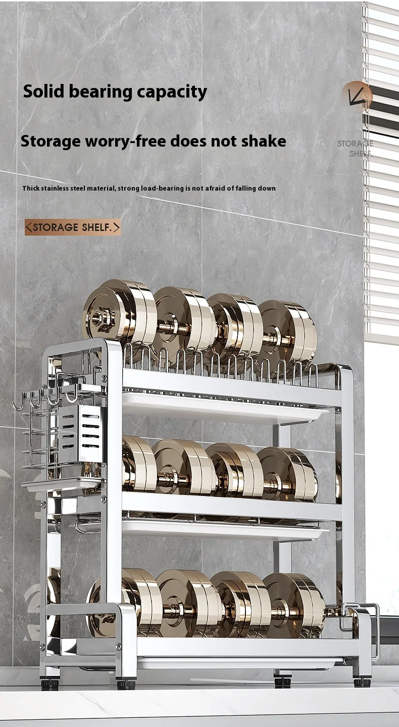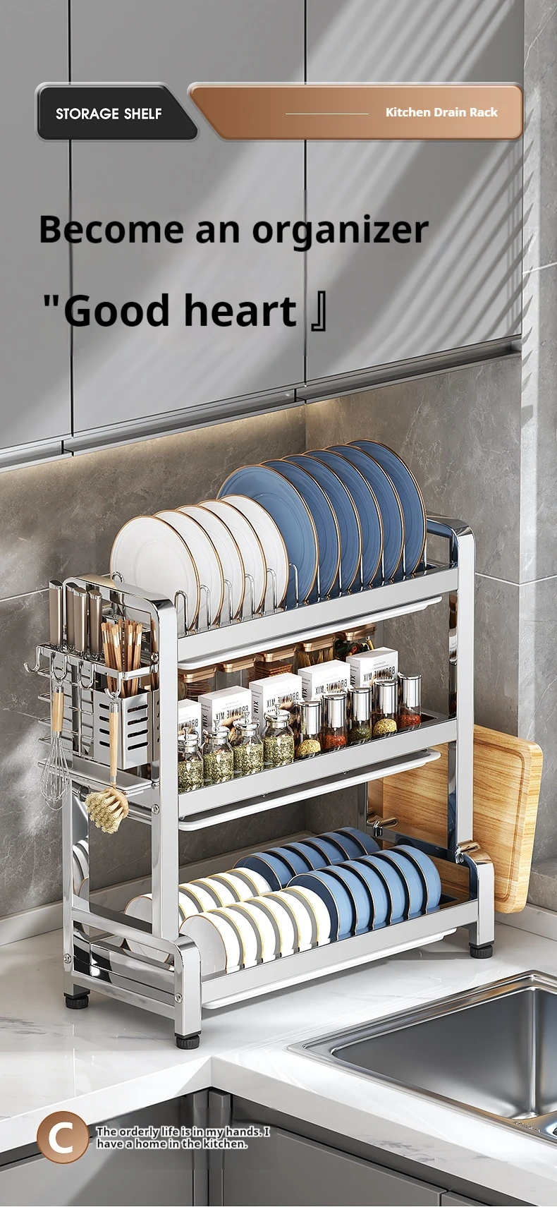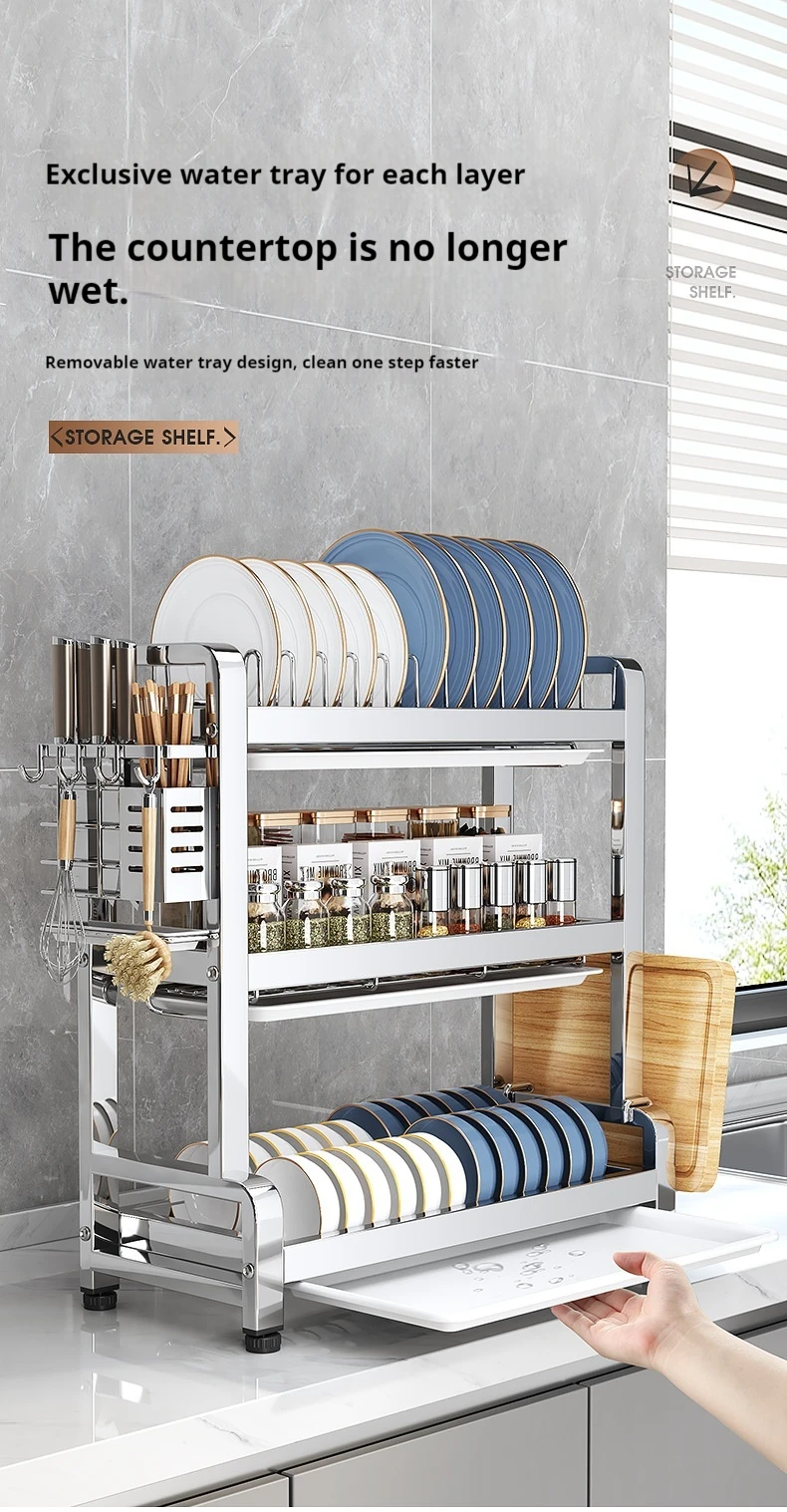 3 Tier Dish Bowl Drainer Thickening Kitchen Dish Drying Rack Multi-function Countertop Dinnerware Organizer with Utensil Holder