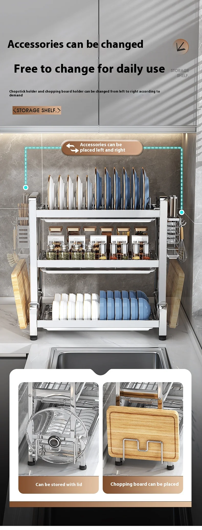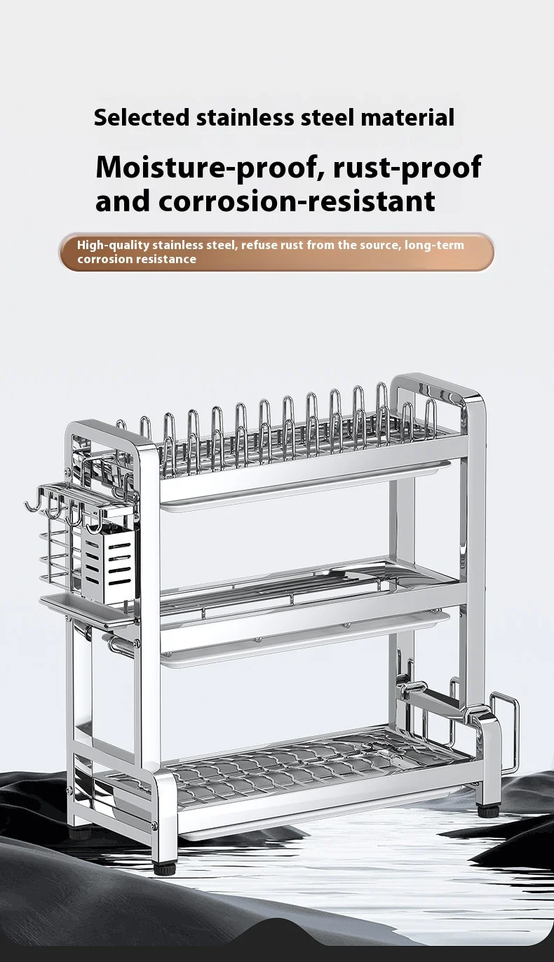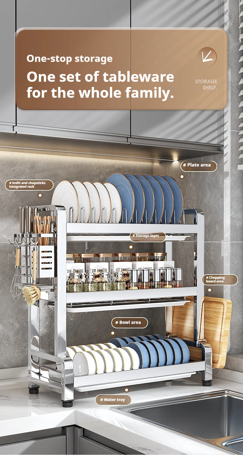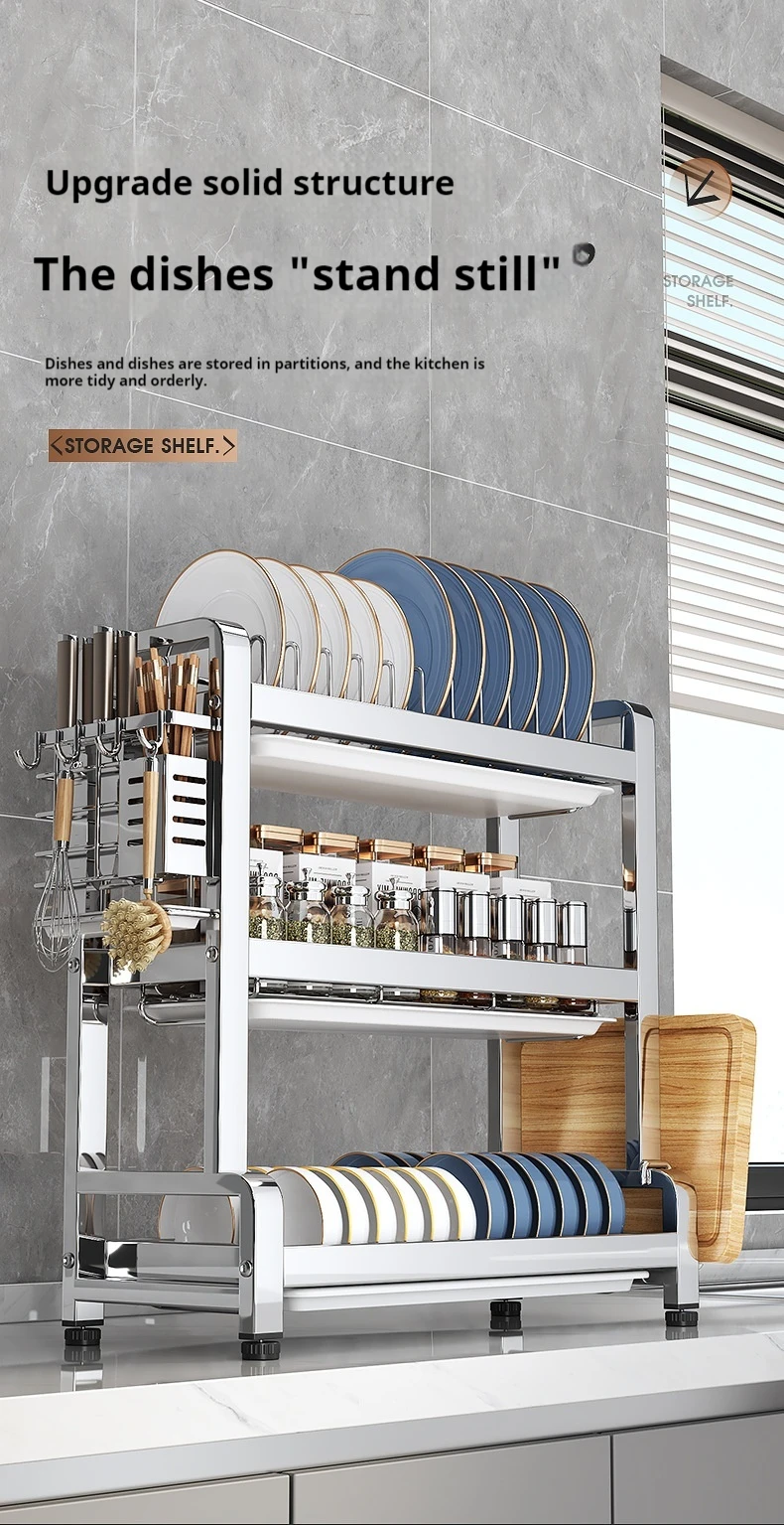 3 Tier Dish Bowl Drainer Thickening Kitchen Dish Drying Rack Multi-function Countertop Dinnerware Organizer with Utensil Holder