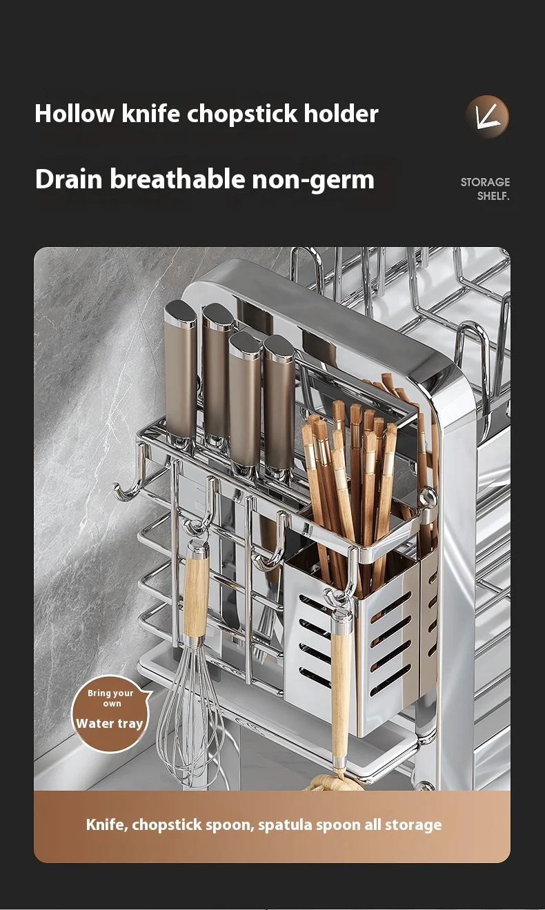 3.Convenient Utensil Access: Our dish drying rack features a well-designed integrated structure, with accessible zones for your utensils. Save time and effort with ease.