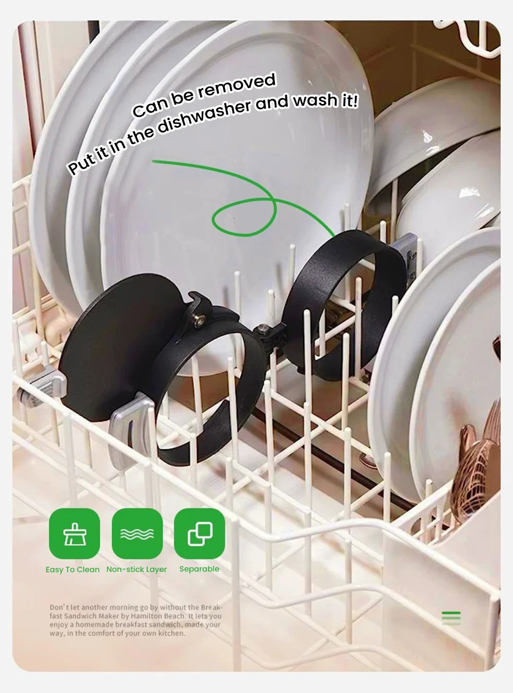 🍔【Easy to clean】: All removable parts on this sandwich maker are dishwasher safe, and nonstick surfaces are PFAS-free.