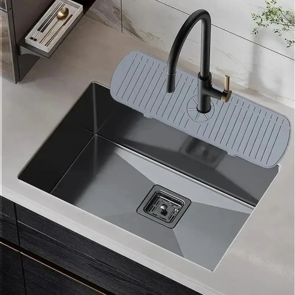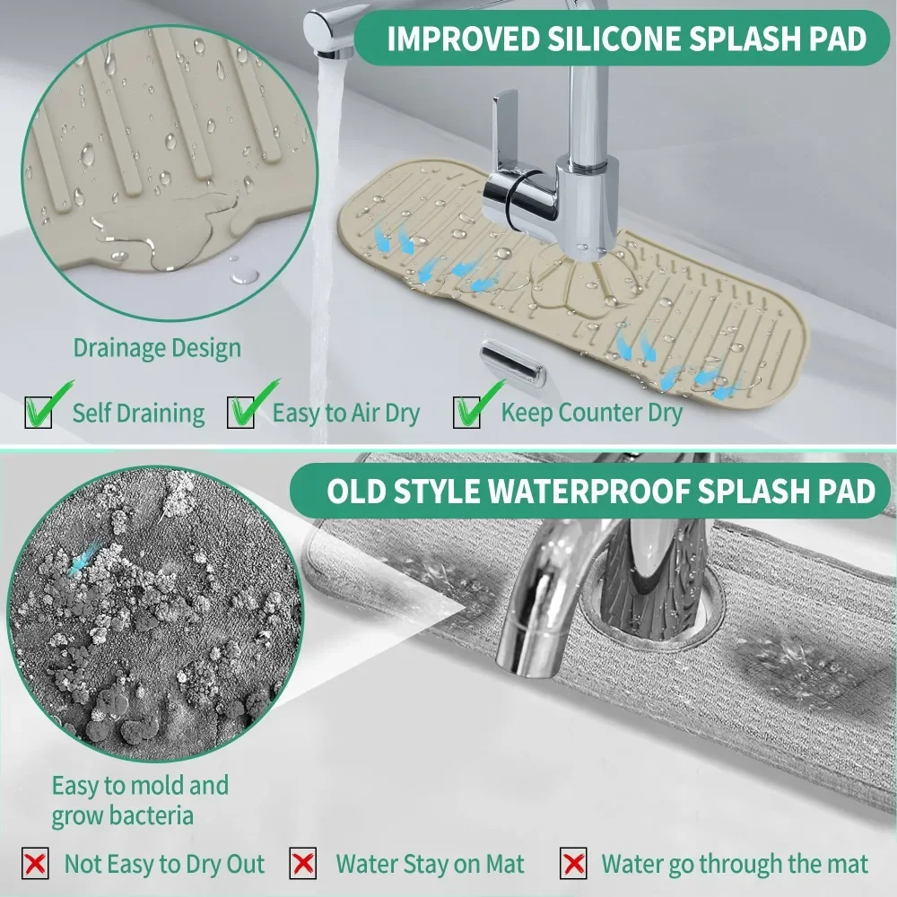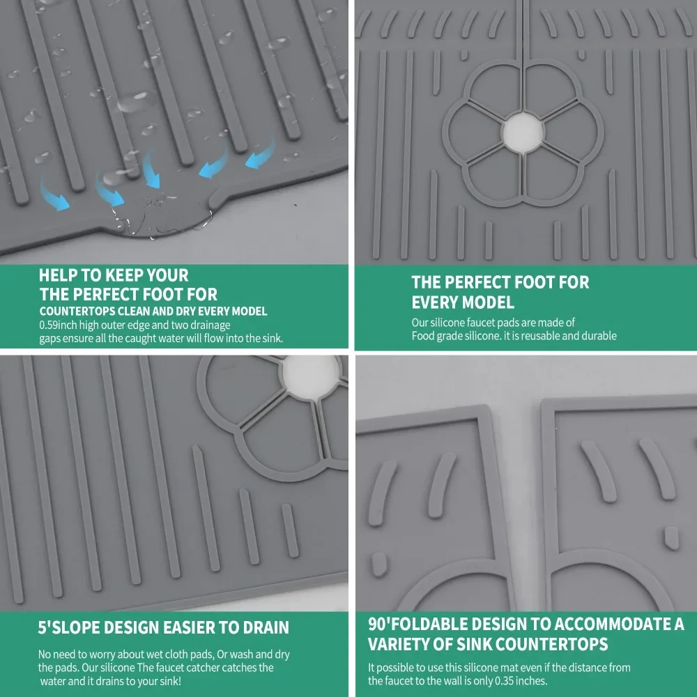 Wide Coverage: 18inches long size kitchen sink splash guard have a wide coverage,not only can cover the entire single bowl sink, but also be suitable for double bowl sink. Use silicone sink faucet mat splash guard so water will not splash onto the sink surface and keep it clean and hygienic