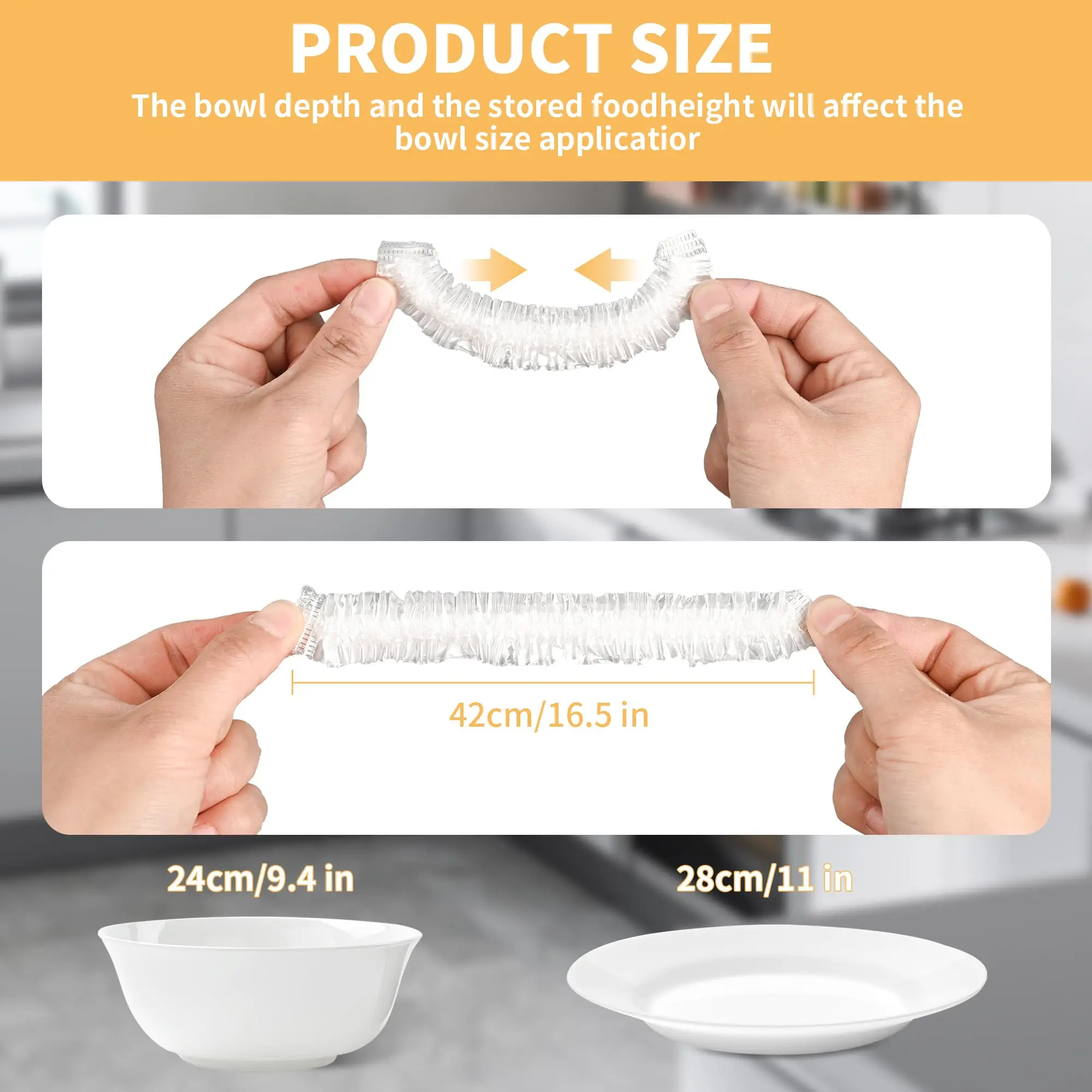 [Elastic Bowl Covers]The stretchable plastic bowl covers makes suitable for bowls,plates and bread proofing basket of various sizes,only need to stretch it along both ends of the bowl cover.The elastic cord fits closely with the edge of the dish,protecting the food in the dish and prevent dust