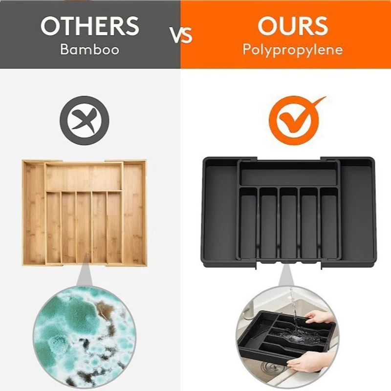 Safety meets durability: Drawer organizer for kitchen utensils is crafted from premium PP material